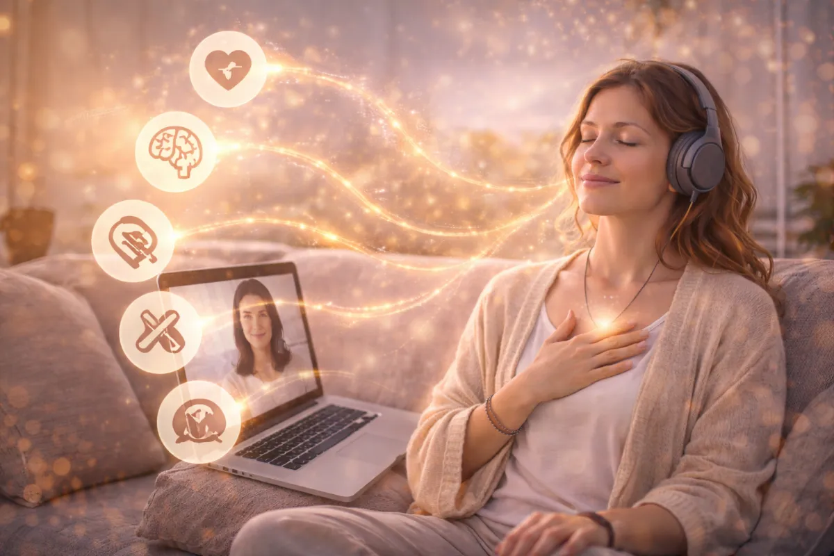 All sessions are conducted online via secure video, allowing you to experience deep healing from the safety and privacy of your own space. No commute, no waiting rooms, no added stress. Just you, in a comfortable environment, receiving the focused attention and care you deserve.